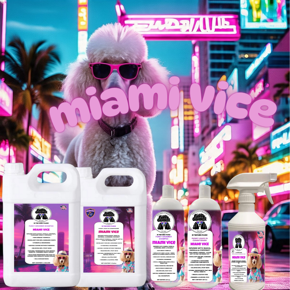 The Funky Poodle “Funky Groomer” Professional ABSOLUTE Concentrated Shampoo is lightly fragranced and highly concentrated, up to 50:1 ultra deep cleansing shampoo that removes the oils, grease, dirt, and stains from the coat. Leaving the coat looking funky fresh, healthy and smelling good. A great shampoo for everyday use and grooming. Completely safe to use at full concentrate.