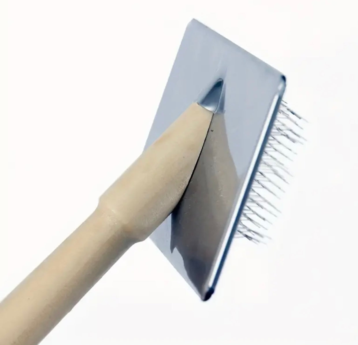 Professional Pet Grooming Brush With Wooden Handle - Perfect For Detangling And Removing Loose Hair
