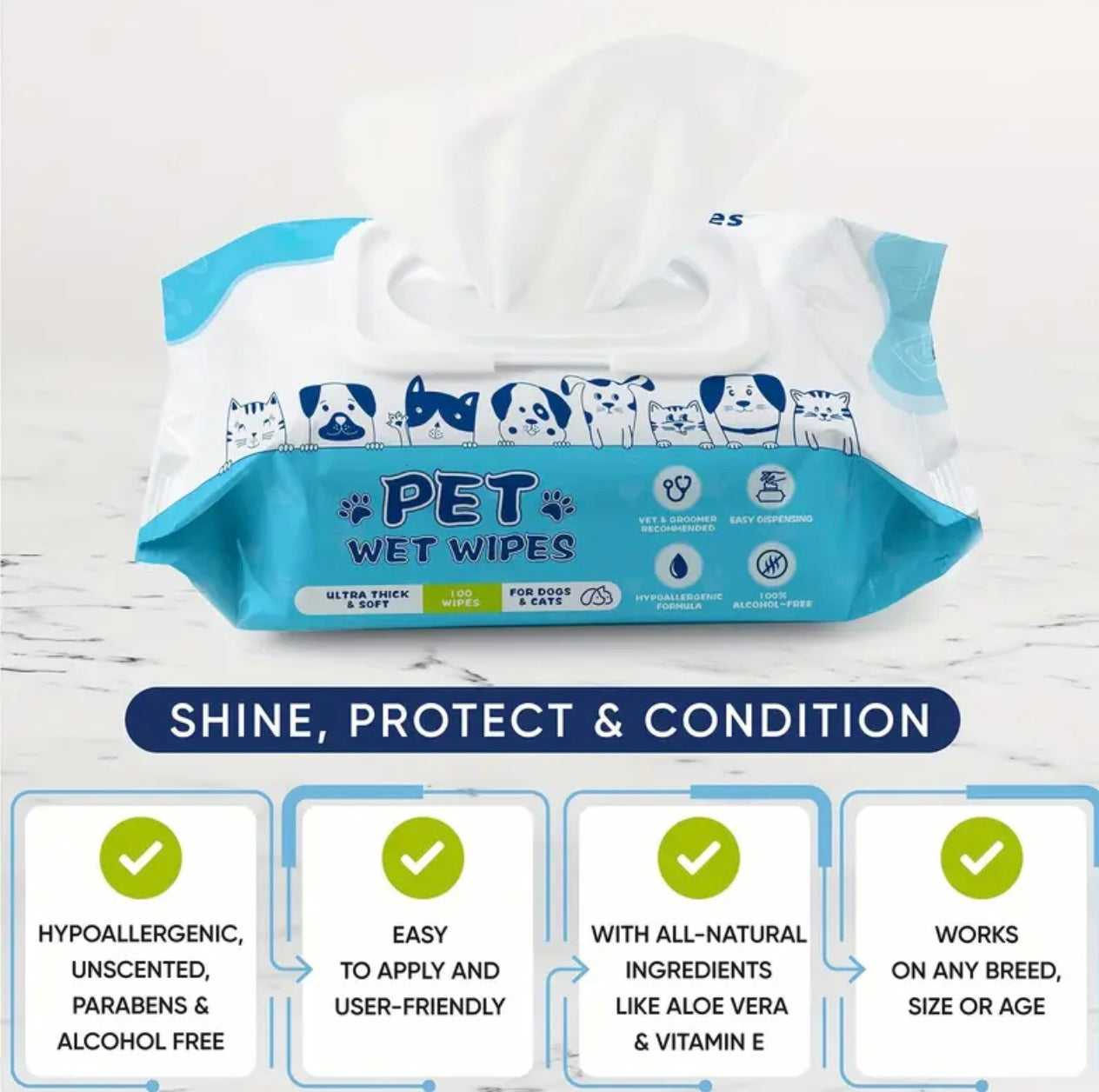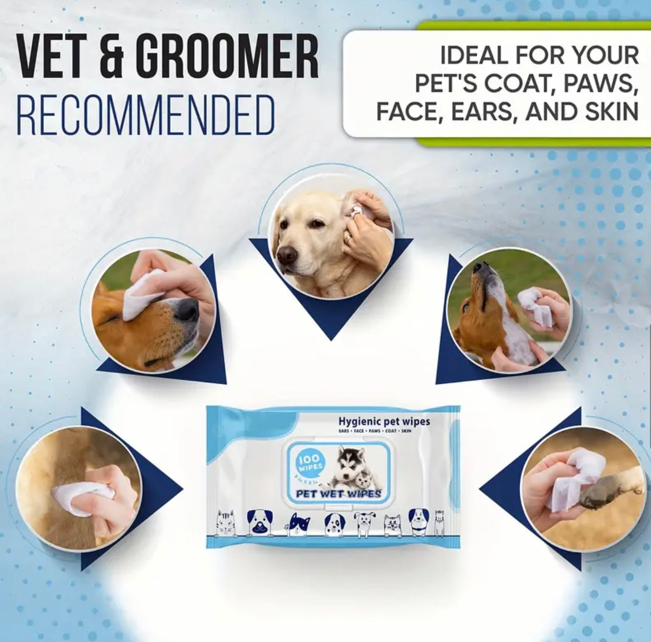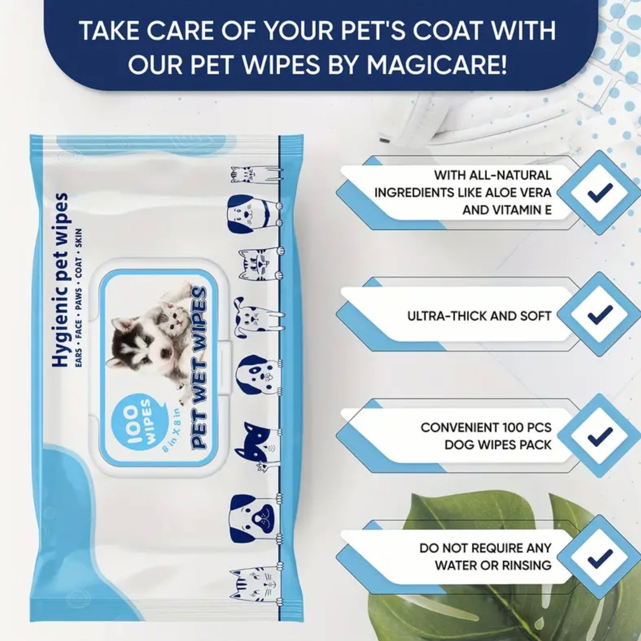 Pet Wipes, 100Pcs Dog Wipes, 8x8 Inch Unscented Dog Paw Cleaner Wipes for Body, Ears, Face, and Skin, Ultra Thick & Soft with Hypoallergenic Formula, Ideal Pet Wipes for Dogs & Cats