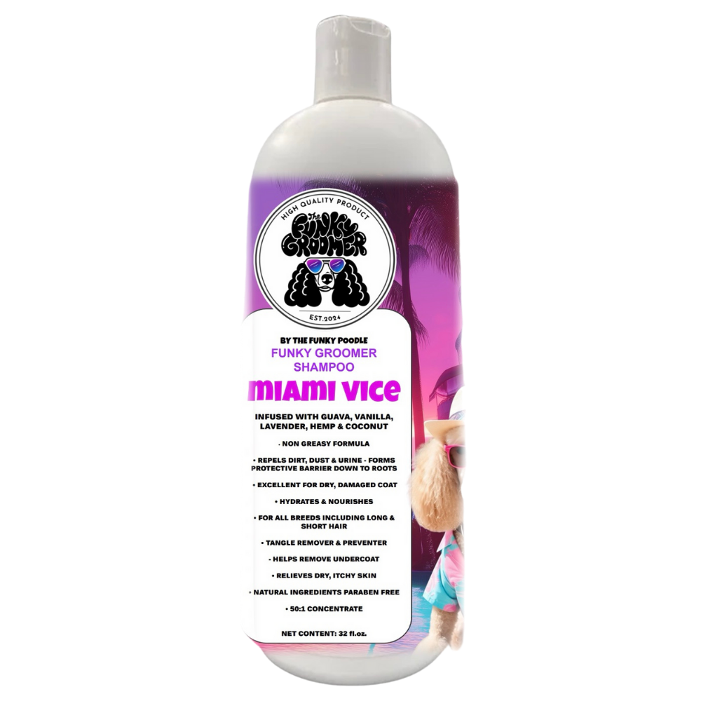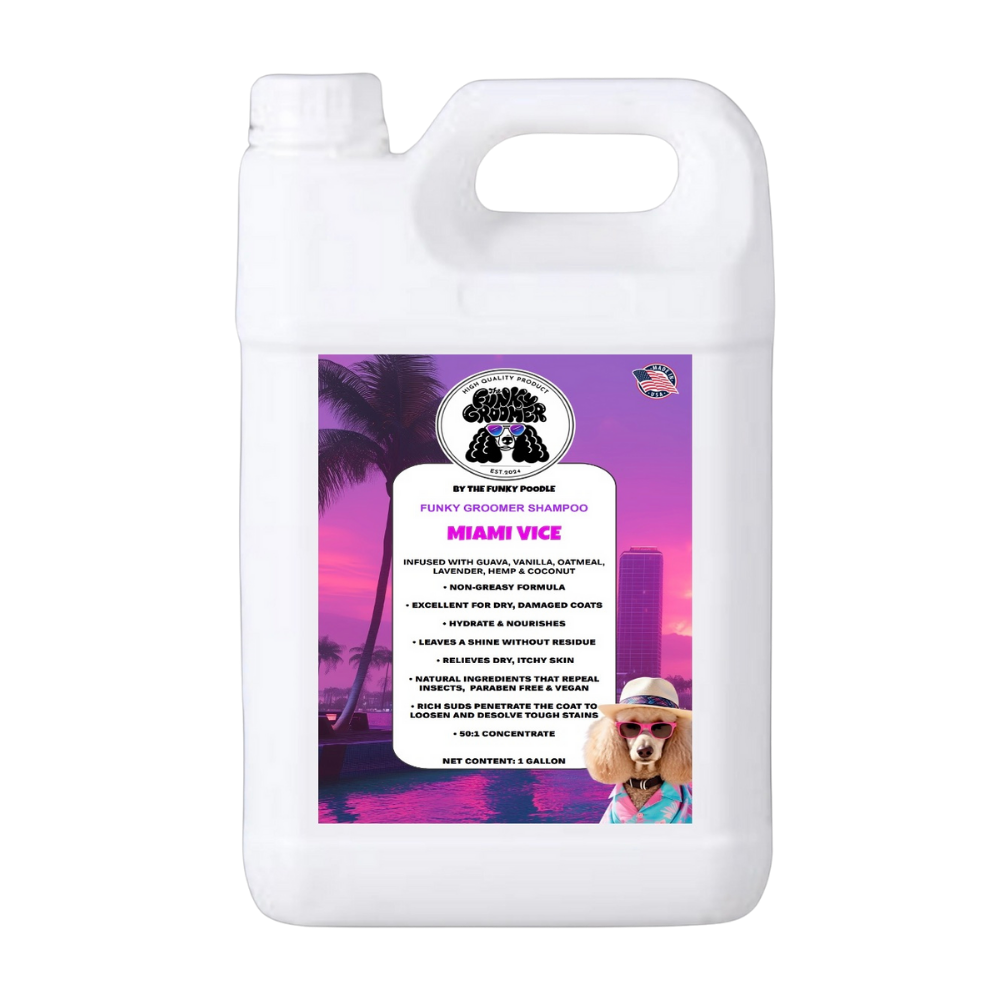The Funky Poodle “Funky Groomer” Professional ABSOLUTE Concentrated Shampoo is lightly fragranced and highly concentrated, up to 50:1 ultra deep cleansing shampoo that removes the oils, grease, dirt, and stains from the coat. Leaving the coat looking funky fresh, healthy and smelling good. A great shampoo for everyday use and grooming. Completely safe to use at full concentrate.
