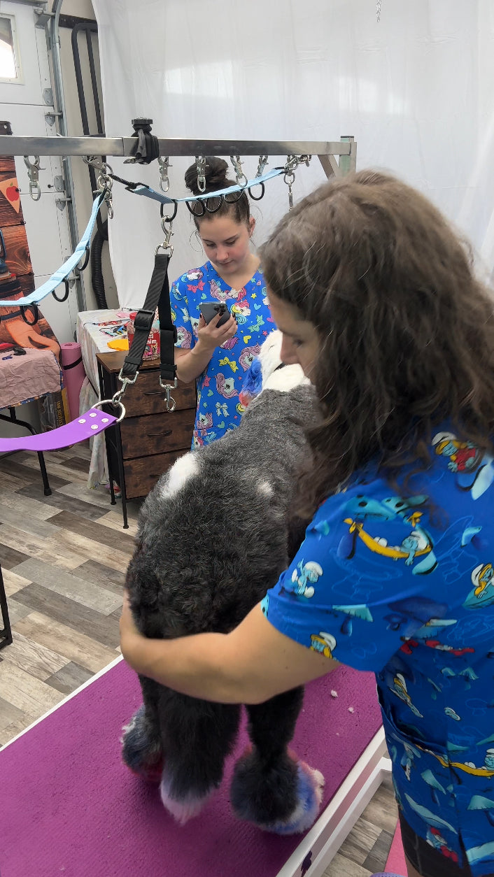 I’m a proud mom of six kiddos — two grown and married, and four still at home. I’m also a grandma (yes, grandma). My oldest daughter, who’s his momma, is training with me to become a groomer. My oldest son serves in the Army. My ex and I share 50/50 custody, so I am a limited schedule, hobby pet stylist, who only grooms pets on the weeks I don’t have my kiddos.