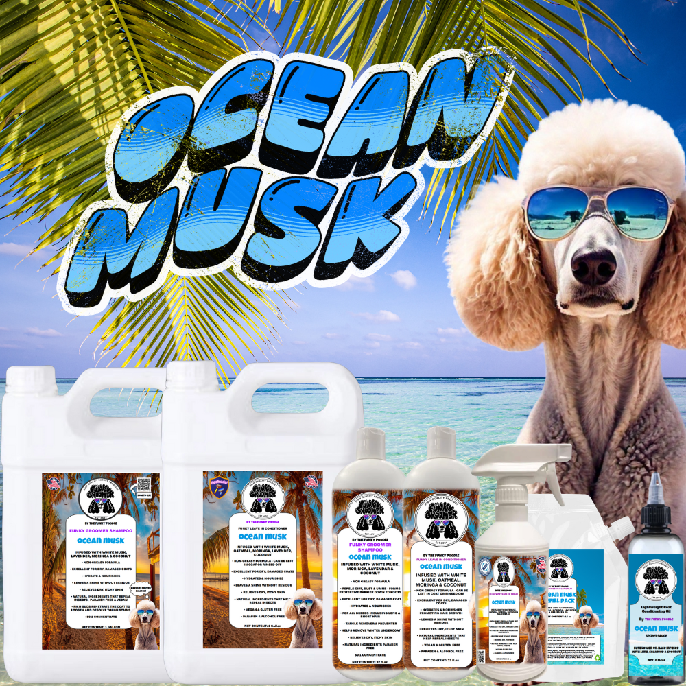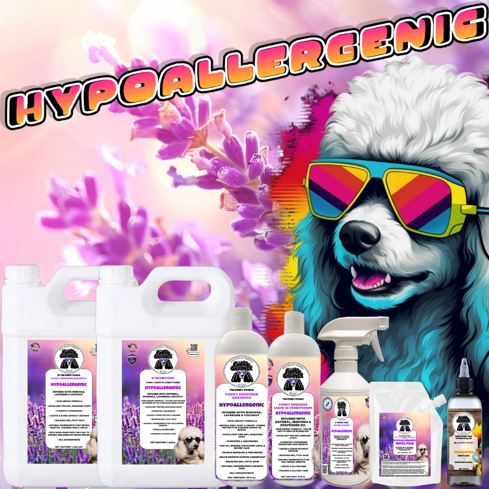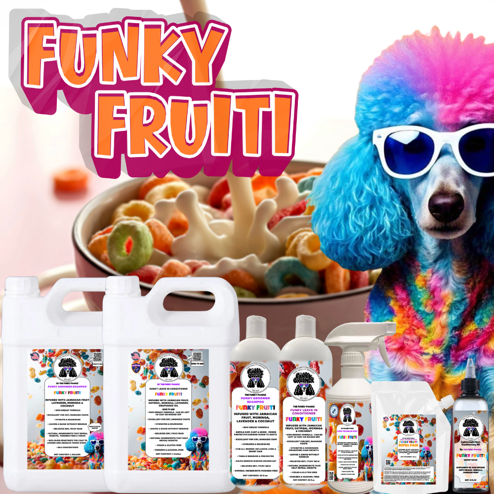 DOG sample PRO kit includes 4oz shampoo, 4oz conditioner, 4oz detangler spray, 2oz scissor spray & 2oz Funky Secret Sauce