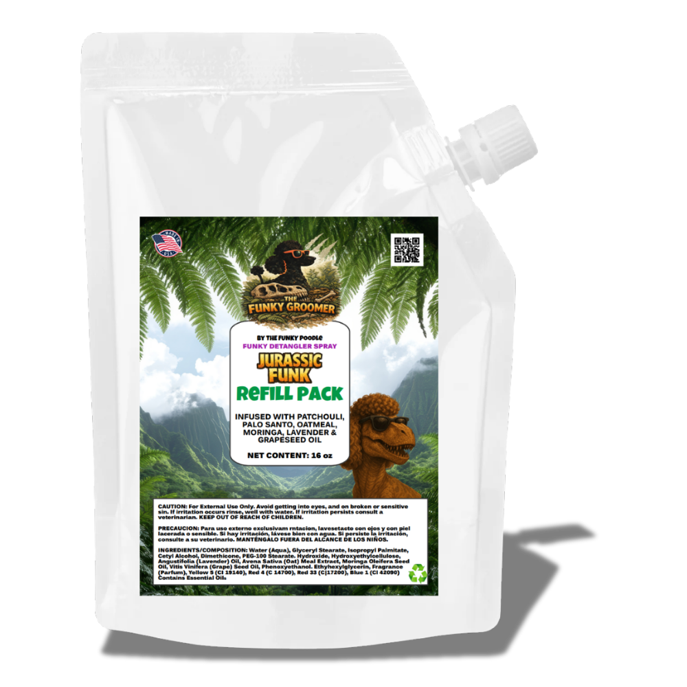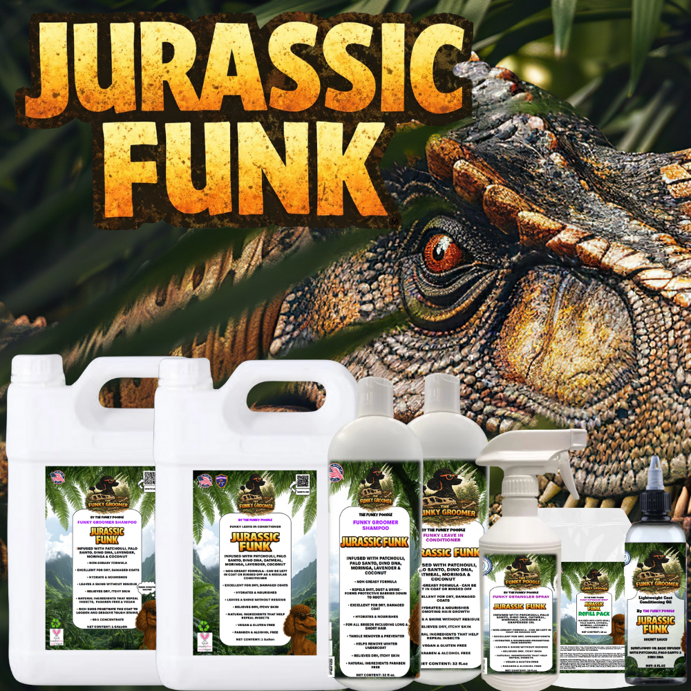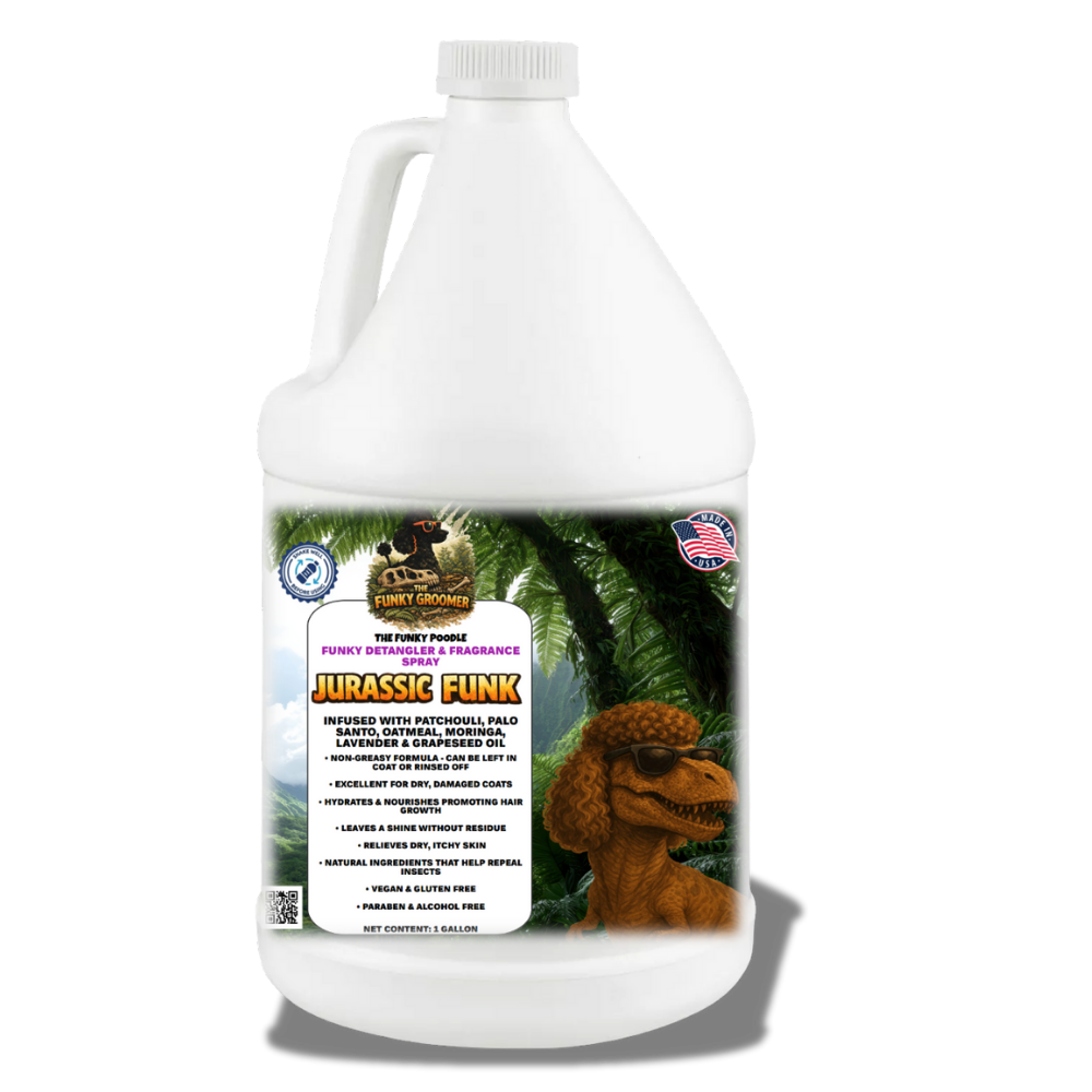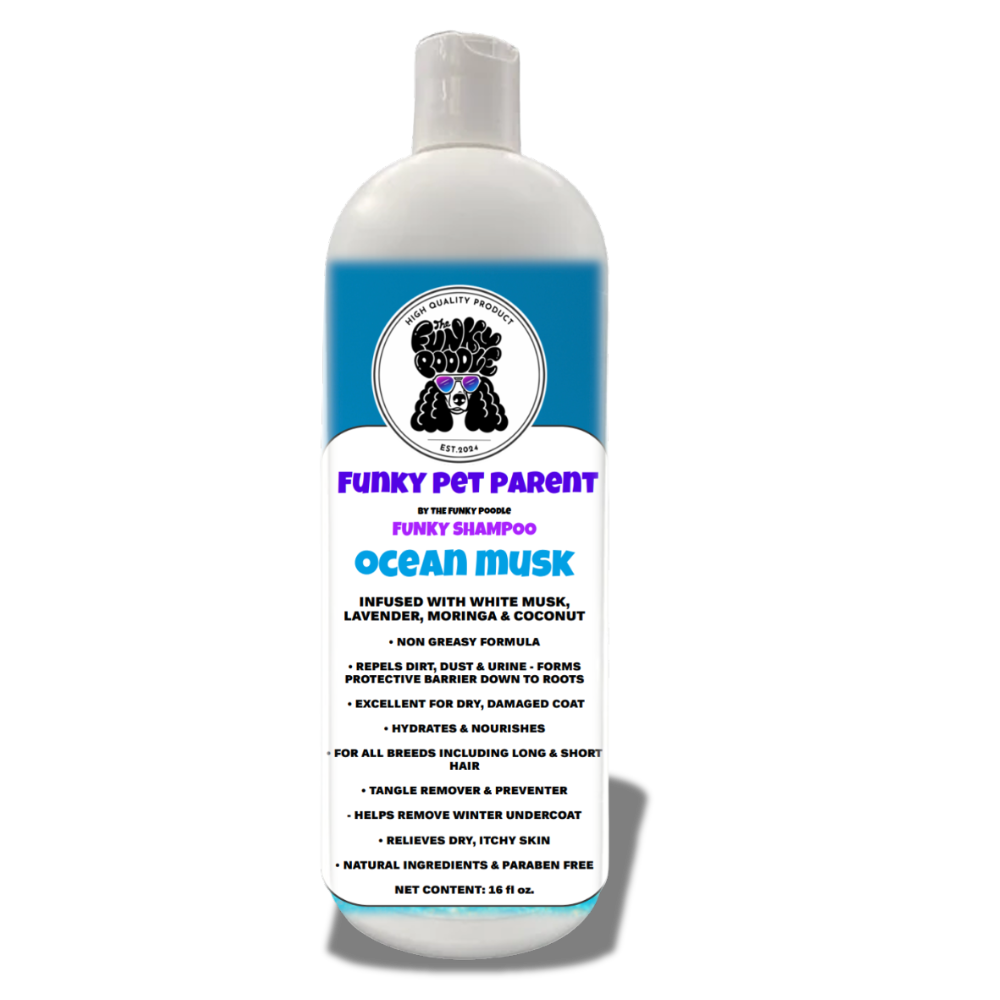 The Funky Poodle “Funky Groomer” Professional ABSOLUTE Concentrated Shampoo is lightly fragranced and highly concentrated, up to 50:1 ultra deep cleansing shampoo that removes the oils, grease, dirt, and stains from the coat. Leaving the coat looking funky fresh, healthy and smelling good. A great shampoo for everyday use and grooming. Completely safe to use at full concentrate.